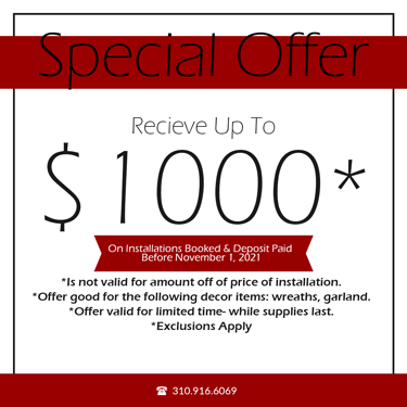 We start installing lights in October, contact us now to get signed up for some of our Early Bird Discounts! We collect a 50% deposit to schedule your installation date. Sometimes we will schedule a date range so we can accommodate as many clients as possible and will provide you with a date your lights will be installed no later than.